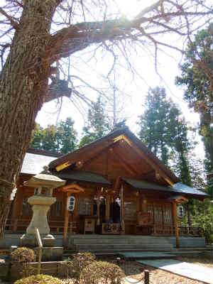 拝殿脇の締め切った建物では大勢の人の笑い声