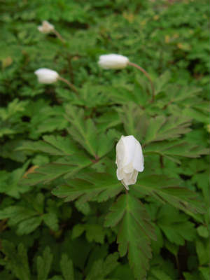 曇り空ののせいか、キクザキイチゲの花もまだ開いていない