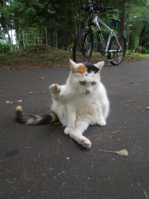 愛想のない三毛 避ける気もないらしい